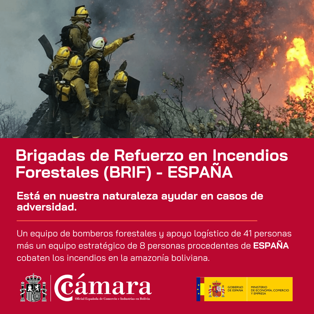 La madrugada de este sábado llegó a Santa Cruz un equipo operativo de bomberos forestales y apoyo logístico de 41 personas procedente de España, junto a un equipo estratégico de ocho personas, para unirse al esfuerzo de lucha contra el avance del fuego en los parques nacionales y otras áreas del oriente boliviano.